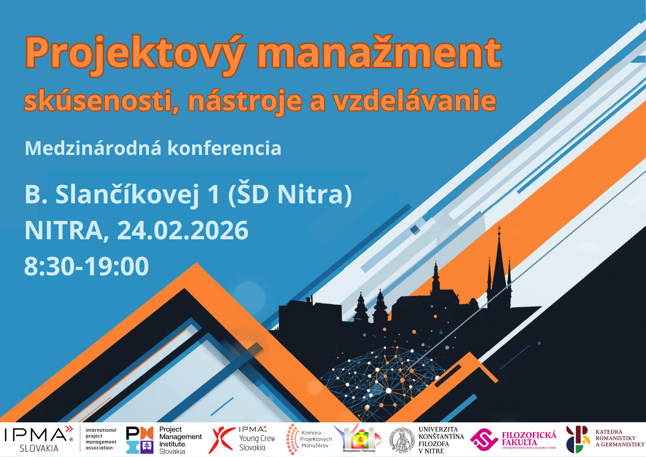 ktorú organizuje Katedra romanistiky a germanistiky, Filozofická fakulta Univerzity Konštantína Filozofa v Nitre . Konferencia sa uskutoční v utorok 24. februára 2026 v priestoroch Študentského domova UKF, Slančíkovej 1, Nitra. Podujatie sa koná pod záštitou dekana Filozofickej fakulty UKF v Nitre, prof. PhDr. Martina Hetényiho, PhD., a je realizované v spolupráci s asociáciami projektového riadenia: PMI Slovakia Chapter, IPMA Slovakia, IPMA Young Crew Slovakia, a Komora projektových manažérov.