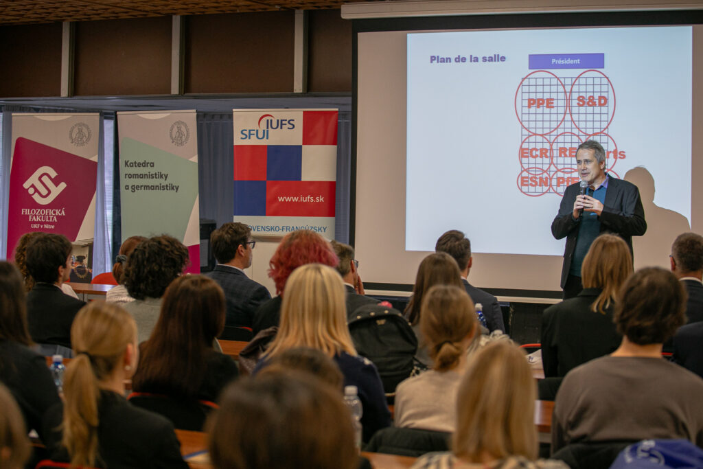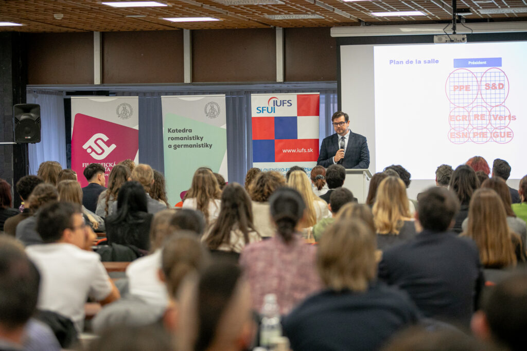 Slávnostné otvorenie patrilo docentovi Radovanovi Gurovi, riaditeľovi Slovensko-francúzskeho univerzitného inštitútu. Následne sa účastníkom prihovoril J. E. pán Nicolas Suran, veľvyslanec Francúzskej republiky na Slovensku. Za Filozofickú fakultu UKF v Nitre privítal účastníkov podujatia dekan fakulty, profesor Martin Hetényi. Vo svojich príhovoroch všetci kládli dôraz na dôležitosť porozumenia európskym hodnotám, aktívnu participáciu mladých ľudí v spoločenskom dianí, a taktiež ocenili význam jazykového a občianskeho vzdelávania v kontexte súčasných spoločenských výziev. Slávnostného otvorenia sa zúčastnil aj atašé pre vedeckú a univerzitnú spoluprácu pán Thomas Perrin. Celý program viedol pán Lukáš Macek, M.A., riaditeľ Sciences Po v Dijone, ktorý študentov previedol rokovacím procesom Európskeho parlamentu – od formovania politických skupín, cez prípravu pozmeňujúcich návrhov až po hlasovanie o legislatívnom návrhu. Vďaka jeho dlhoročným skúsenostiam získali účastníci autentický pohľad na fungovanie európskych inštitúcií.