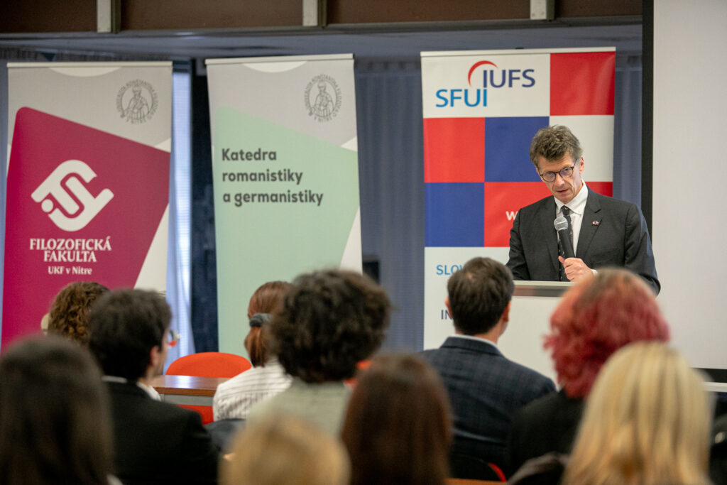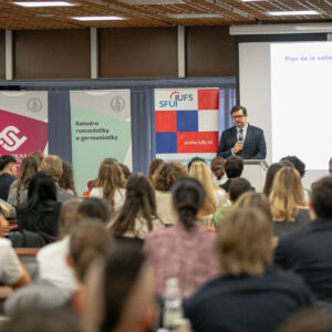 Dňa 21. novembra 2025 sa na Filozofickej fakulte UKF v Nitre uskutočnila Simulácia Európskeho parlamentu vo francúzskom jazyku, ktorá pritiahla rekordných 120 stredoškolákov z celého Slovenska. Podujatie predstavovalo výnimočnú príležitosť pre mladých ľudí zažiť proces európskeho rozhodovania „naživo“ a zároveň aktívne používať francúzsky jazyk v autentickom kontexte.